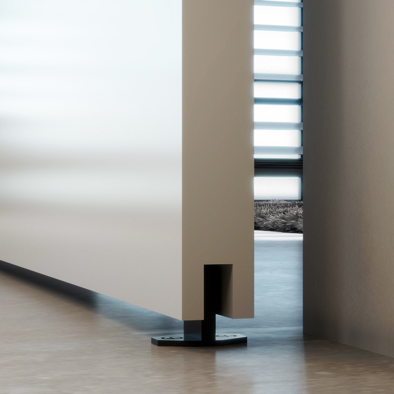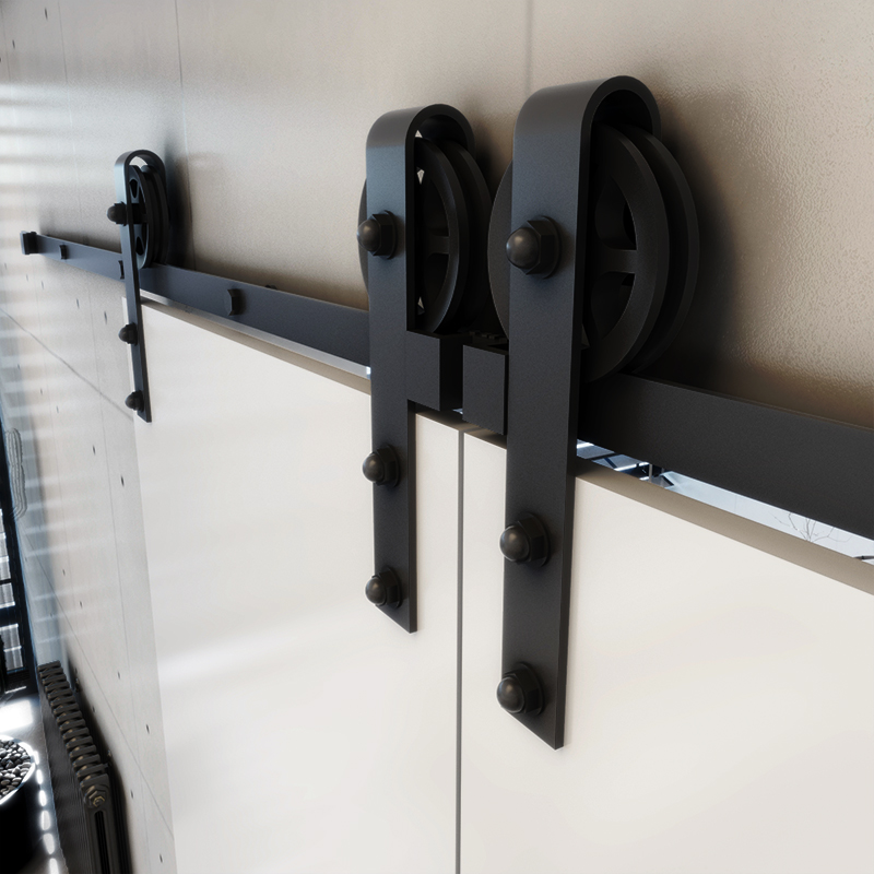 Das raffinierte offen hängendes, schwarzes schiebetürsystem in scheunentor-optik bringt eine moderne Note in Ihr Zuhause.