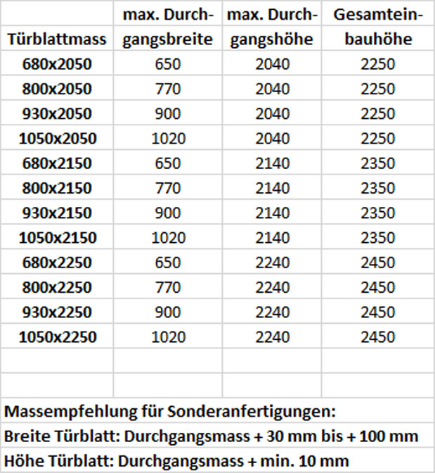 Ob in Standard- oder Sondermaßen – das Viele Maße zur auswahl, aber auch Sondermasse sind möglich.
